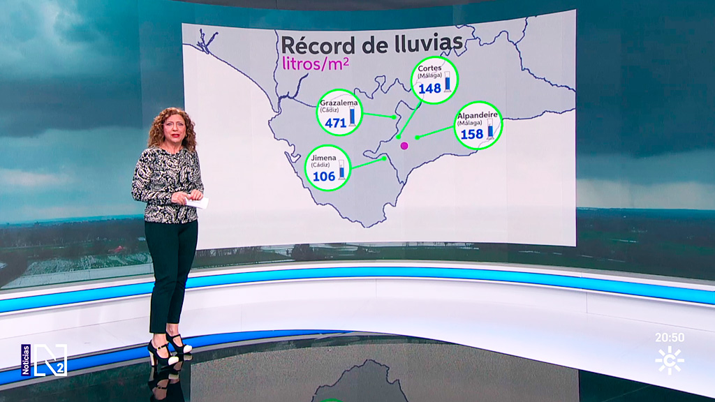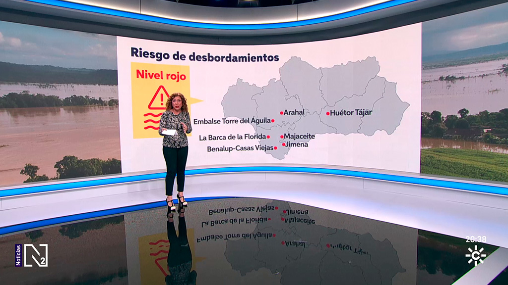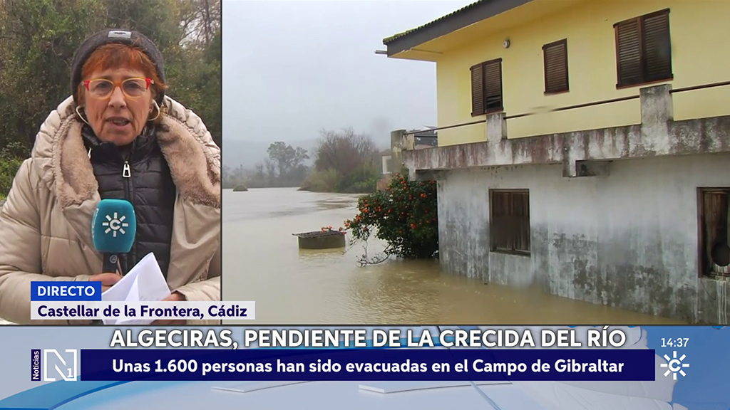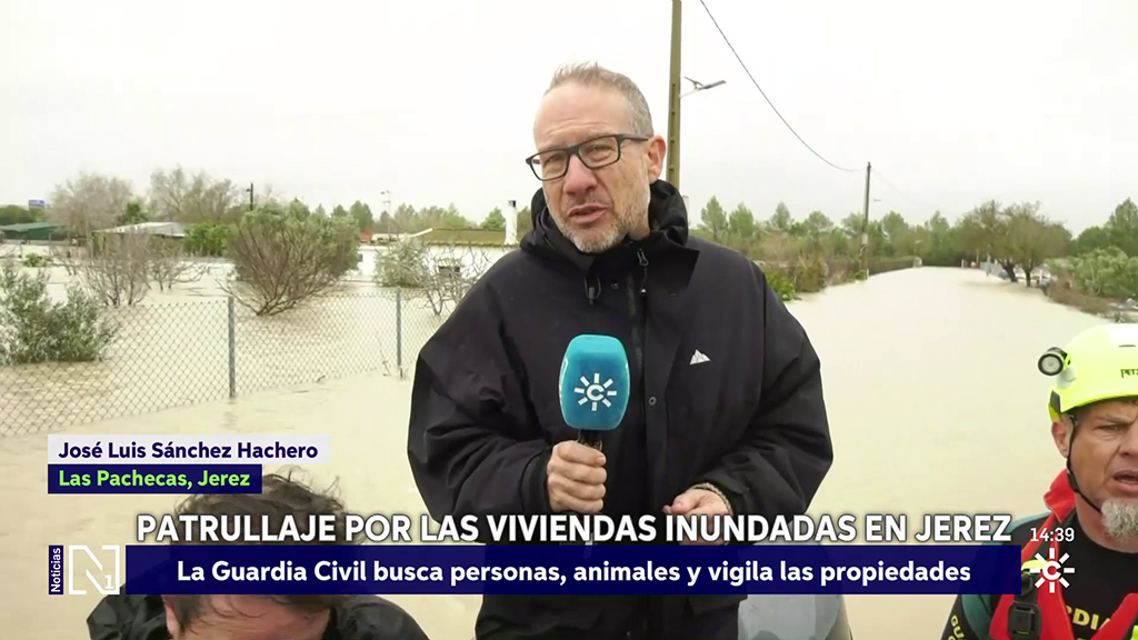 Un equipo de Canal Sur patrulla con la Guardia Civil y comprueba la dimensión de la catástrofe que mantiene desalojados a mas de mil vecinos de la zona rural de Jerez. Las evacuaciones seguirán con la llegada de más agua desde Grazalema.