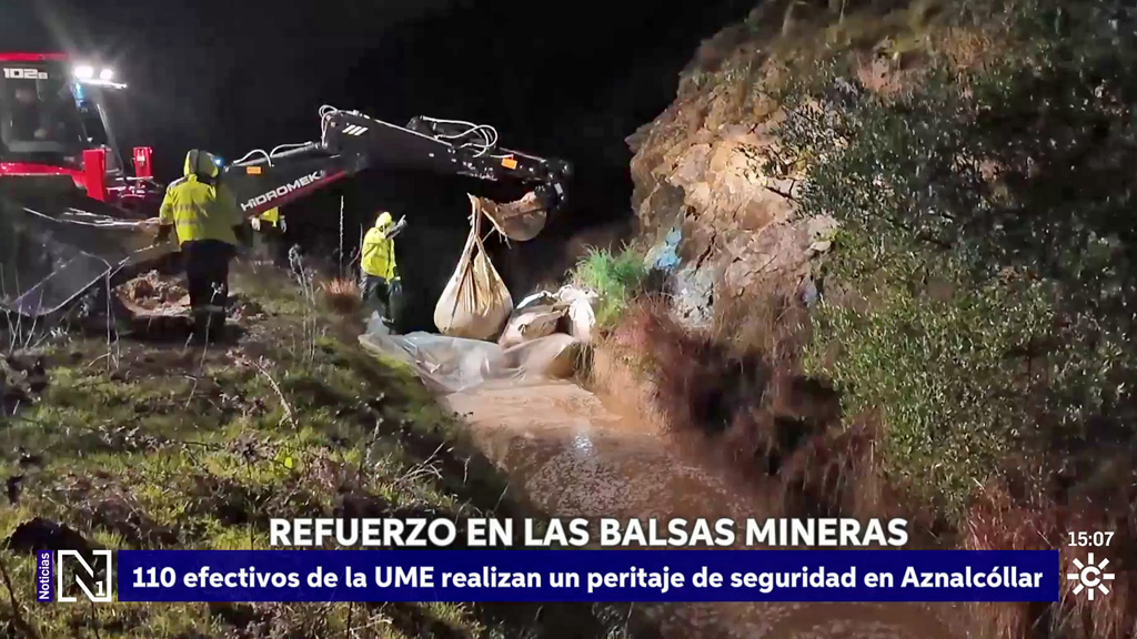 El agua de lluvia arrastra pirita y los trabajos están tratando de evitar que desagüe en el embalse. La Unidad Militar de Emergencias despliega dos destacamentos en Aznalcóllar. Se ha elegido esta localidad como base para controlar las zonas mineras de Sevilla y Huelva.