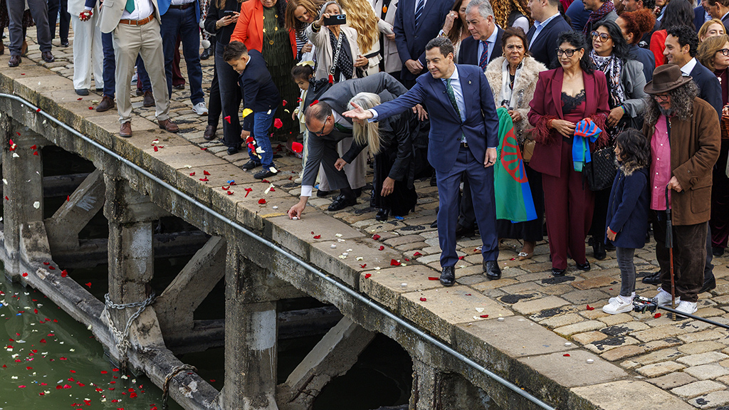 Flores que simbolizan la esperanza, velas del recuerdo, agua símbolo de la unión y el himno del pueblo gitano. Así se ha celebrado el Día Internacional del Pueblo Gitano a orillas del Guadalquivir.